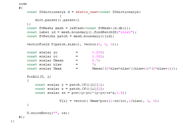 Non uniform inlet profil with codedFixedValueIn most commercial codes (CFX, FLUENT, STARCCM + …) it is relatively easy to introduce a non-uniform profile for a boundary condition. For example, in case of a fully developed laminar at pipe entrance. It is possible to perform equivalent modeling with OpenFOAM® using the codedFixedValue boundary condition. The purpose…